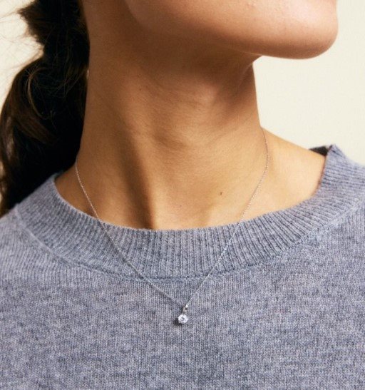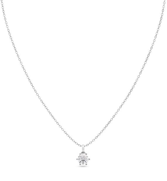 I den klassiska serien Crown kommer här ett halsband där den klara stenen är elegant infattad med sex klor. Crown halsband blir en favorit alla dagar i veckan och gärna i layering med fler halsband och kedjor. Den infattade stenen hänger i en ankarkedja och ses här i blankt rostfritt stål.