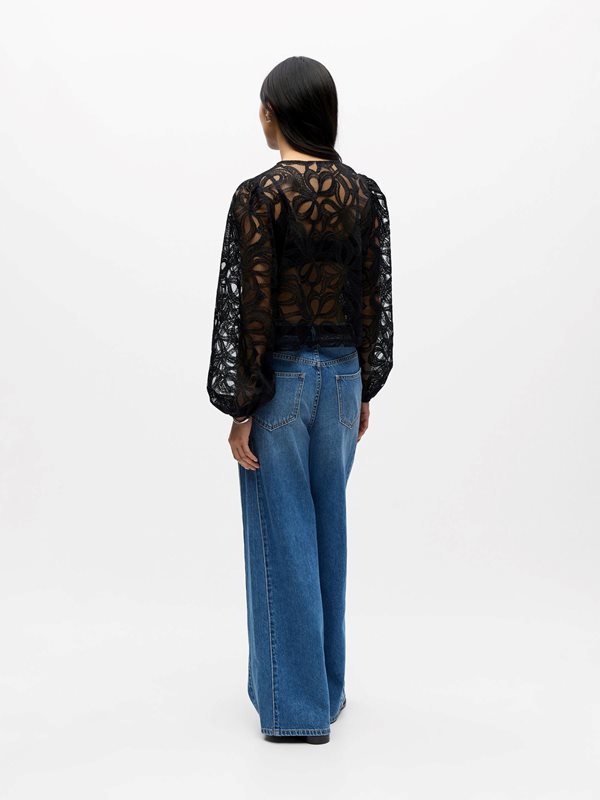 En elegant spetsblus från OBJECT som kombinerar feminina detaljer med modern design. Blusen har transparent spets med vackert mönster, rund hals och knappstängning framtill. De långa, lätt puffade ärmarna ger en luftig och romantisk känsla.