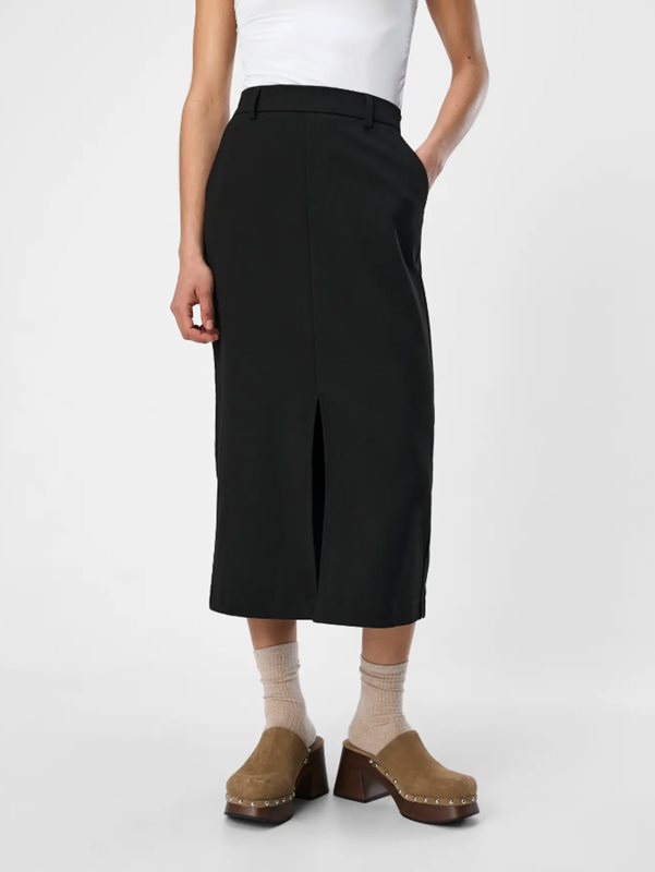 OBJLISA HARLOW Skirt från OBJECT är en stilren och mångsidig midikjol med en klassisk, rak siluett. Den höga midjan ger en smickrande passform medan den centrala slitsen framtill gör modellen både bekväm och modern. Kjolen är enkel att klä upp med blus och klackar eller bära mer avslappnat med stickad tröja och sneakers.