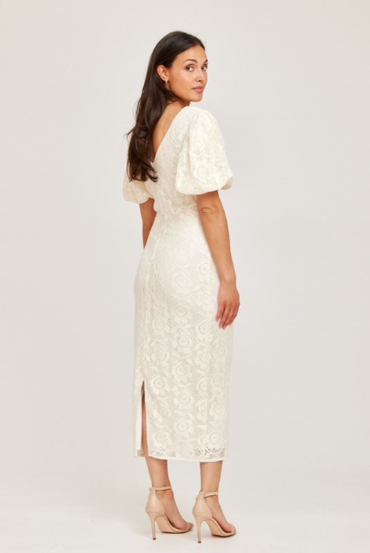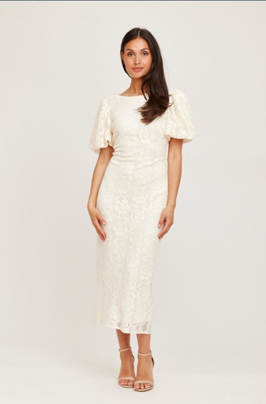 En av våra mest populära modeller är tillbaka – nu i en ny, vacker crochet-kvalitet. Liz Crochet Dress kommer här i en elegant cremefärgad ton med ett dekorativt, strukturerat blommönster som ger ett exklusivt och somrigt uttryck.
