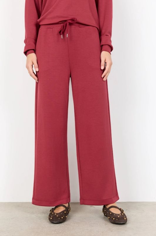 Mjuk och följsam byxa från SoyaConcept – perfekt för avslappnade dagar eller en bekväm vardagslook. Modellen har raka, vida ben, elastisk midja med dragsko och en härligt mjuk känsla mot huden.