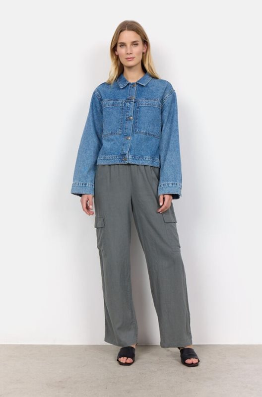 SC-Dolores 2 är en avslappnad och modern jeansjacka tillverkad av en skön blandning av bomull och återvunnen polyester. Jackan har skjortkrage, knappstängning, långa ärmar, två framfickor och en croppad design. Styla denna härliga jacka med en mönstrad t-shirt och ett par linneshorts för en snygg look.