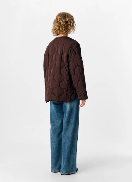 En stilren och lätt quiltad jacka från Object som passar perfekt för övergångssäsong. Jackan har ett modernt, mjukt vågformat quiltmönster som ger ett uppdaterat uttryck, samtidigt som den raka passformen gör den enkel att bära över både stickat och skjorta. Den kraglösa designen och knäppningen framtill skapar en minimalistisk look som fungerar lika bra till vardag som till en mer uppklädd stil.