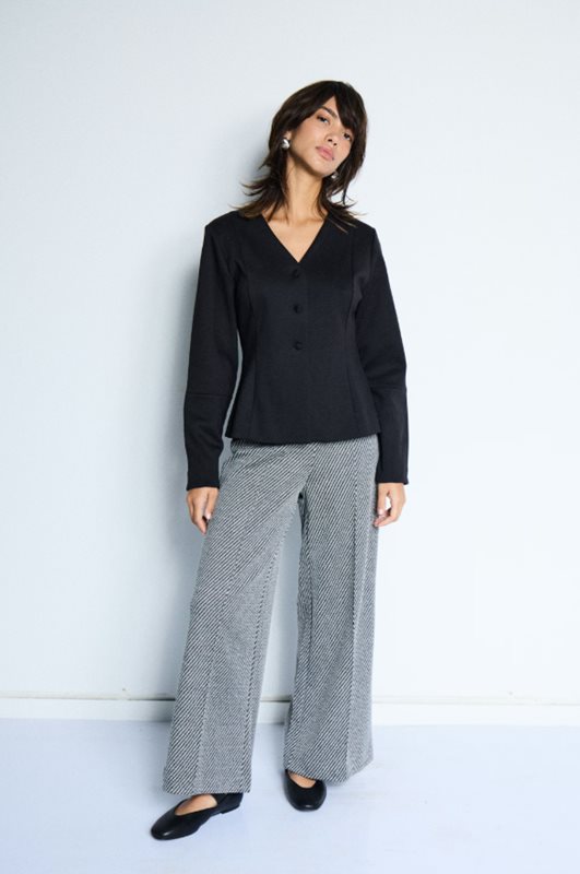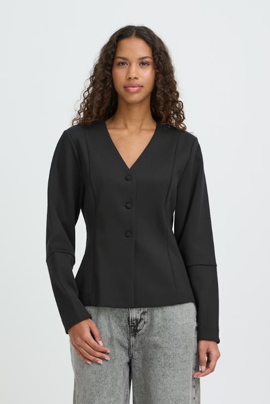 Figursydd kavaj med tydlig V-ringning, markerad silhuett och tre släta knappar framtill. Långa ärmar med paneldetalj och ren finish.