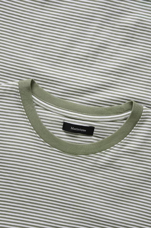 Randig t-shirt med rak passform, klassisk rund halsringning och korta ärmar. Diskreta horisontella ränder och kontrastkant ger en ledig twist. Mjuk och fin struktur.
