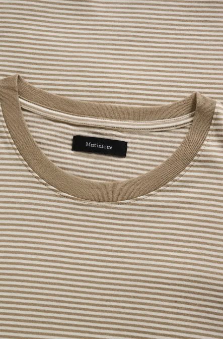 Randig t-shirt med rak passform, klassisk rund halsringning och korta ärmar. Diskreta horisontella ränder och kontrastkant ger en ledig twist. Mjuk och fin struktur.