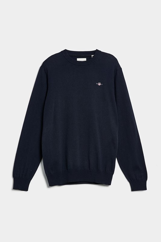 Stickad tröja från GANT är en klassisk och tidlös stickad tröja i en mjuk bomulls- och ullmix. Den har en regular fit som ger en bekväm vardagspassform och det ikoniska GANT-broderiet på bröstet som en stilren detalj. Tröjan har ribbade avslut och en finstickad struktur som gör den enkel att bära både till skjorta och t-shirt – perfekt för både kontor och fritid.