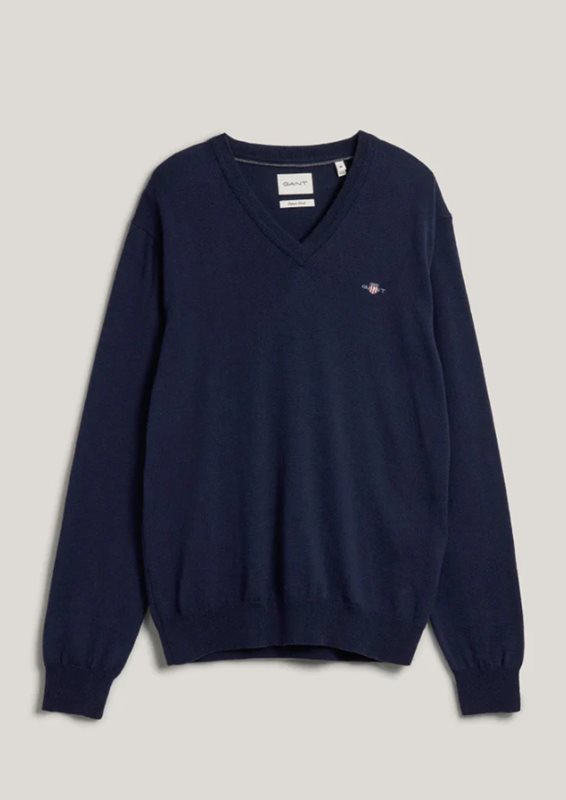 Stickad tröja från GANT är en klassisk och tidlös stickad tröja i en mjuk bomulls- och ullmix. Den har en regular fit som ger en bekväm vardagspassform och det ikoniska GANT-broderiet på bröstet som en stilren detalj. Tröjan har ribbade avslut och en finstickad struktur som gör den enkel att bära både till skjorta och t-shirt – perfekt för både kontor och fritid.