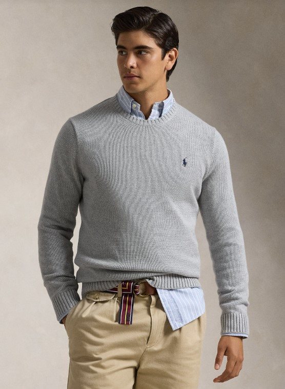 Klassisk stickad tröja från Ralph Lauren i 100% bomull. En tidlös modell med rund halsringning, ribbade muddar och nederkant för en bekväm passform. Tröjan pryds av den ikoniska Polo Player-logotypen broderad på bröstet. Perfekt att bära både över en skjorta för en mer dressad look eller till jeans för en avslappnad stil.