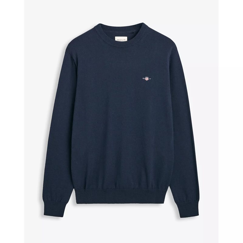 Stickad tröja från GANT är en klassisk och tidlös stickad tröja i en mjuk bomulls- och ullmix. Den har en regular fit som ger en bekväm vardagspassform och det ikoniska GANT-broderiet på bröstet som en stilren detalj. Tröjan har ribbade avslut och en finstickad struktur som gör den enkel att bära både till skjorta och t-shirt – perfekt för både kontor och fritid.
