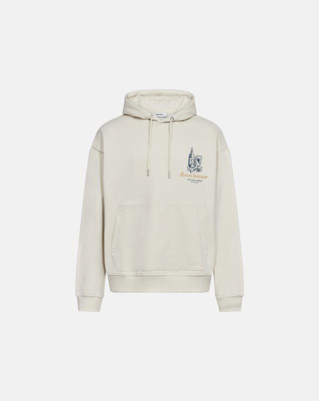 En klassisk hoodie med avslappnad känsla och tidlös design. Den off-vita nyansen ger ett mjukt och stilrent uttryck som är lätt att kombinera med resten av garderoben.