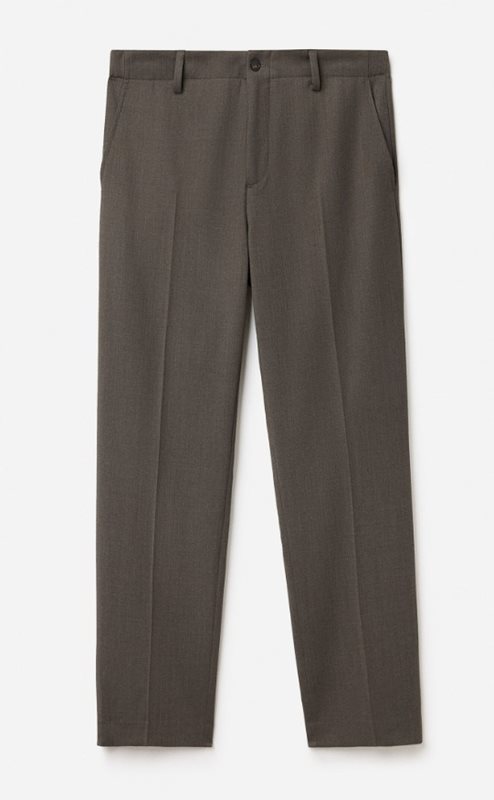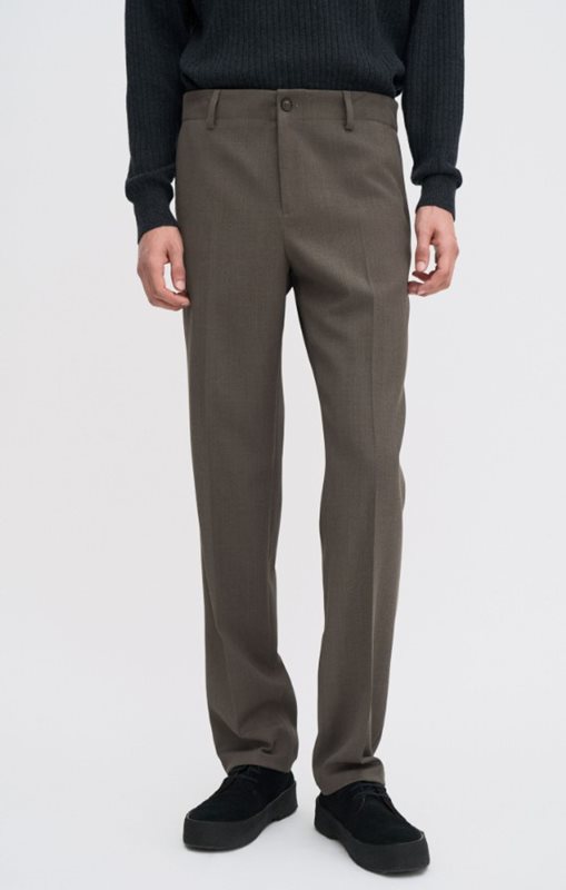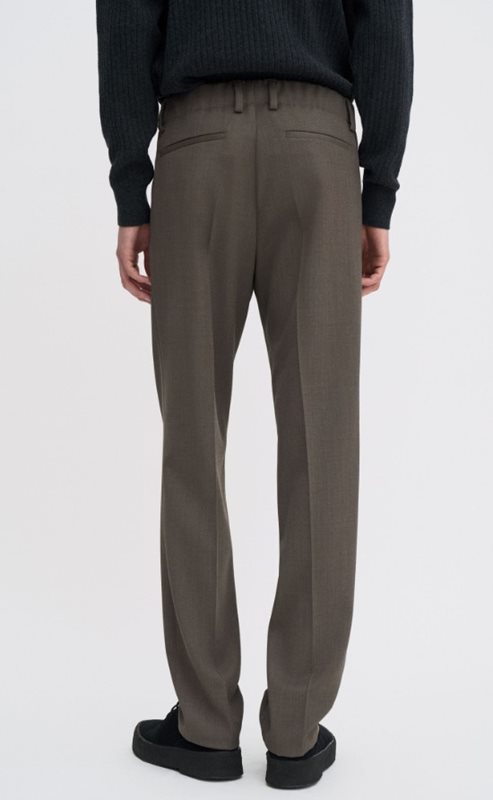 Skräddade byxor med elastisk midja är designade med en smal avsmalnande passform, medelhög midja och full längd. Skräddarsydd av en grönmelerad merinoullblandning med lätt stretch. Bär dem med en piké för en enkel vardagsuniform.