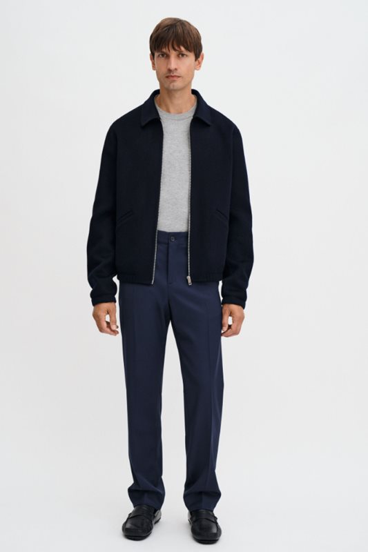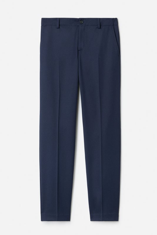 Skräddade byxor med elastisk midja är designade med en smal avsmalnande passform, medelhög midja och full längd. Skräddarsydd av en grönmelerad merinoullblandning med lätt stretch. Bär dem med en piké för en enkel vardagsuniform.