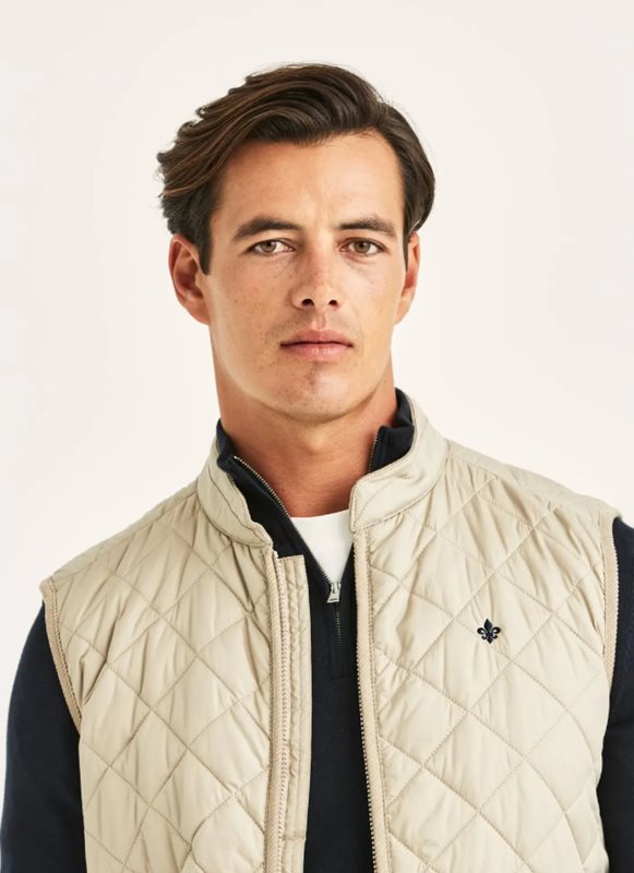 Teddy Quilted Vest från Morris är en tidlös quiltad väst och en modern tolkning av den populära Trenton Quilted Vest som funnits med sedan märkets första kollektion. Denna version har en mer diskret broderad lilja på bröstet för ett stilrent uttryck. Med sin sportiga och ungdomliga känsla passar västen perfekt året runt – som ett extra lager över skjorta, stickat eller hoodie. Dekorativa manchesterdetaljer, snedställda fickor och en praktisk 2-vägsdragkedja gör den till en klassisk investering i brittisk preppy stil.