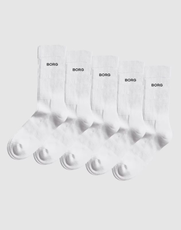 Ett mångsidigt 5-pack med Björn Borg Essential Crew-strumpor i svart. Tillverkade i en mjuk bomullsblandning med återvunnen polyester och elastan som erbjuder vardagskomfort och hållbarhet. Perfekta som dina dagliga basstrumpor med klassisk crew-höjd och bekväm passform.