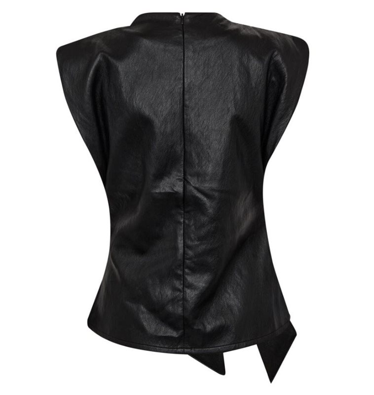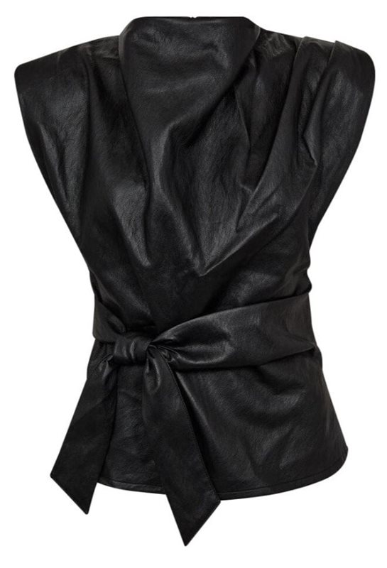 Trendigt linne i skinnimitation från Co'Couture med draperad front och markerad midja. Den knyts med ett brett band som framhäver siluetten och ger en elegant, modern look – perfekt till både kostymbyxor och kjol.