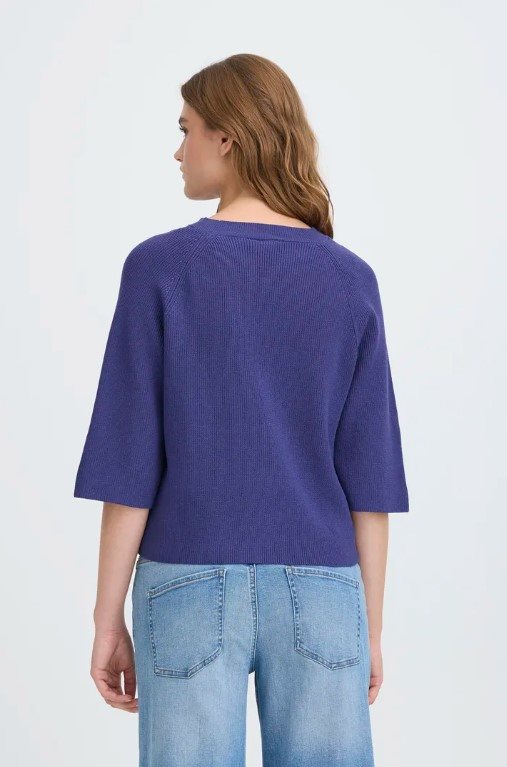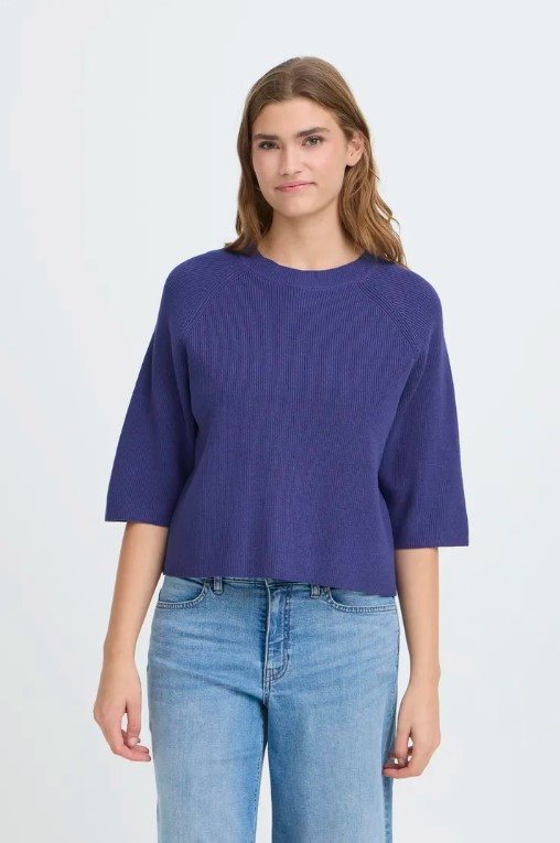 Denna stickade tröja från Ichi kombinerar en avslappnad silhuett med en stilren, modern känsla. Modellen har en rak passform med trekvartsärm och en mjuk, ribbstickad struktur som ger ett elegant fall. Ett tidlöst plagg som fungerar lika bra till jeans som till dressade byxor.
