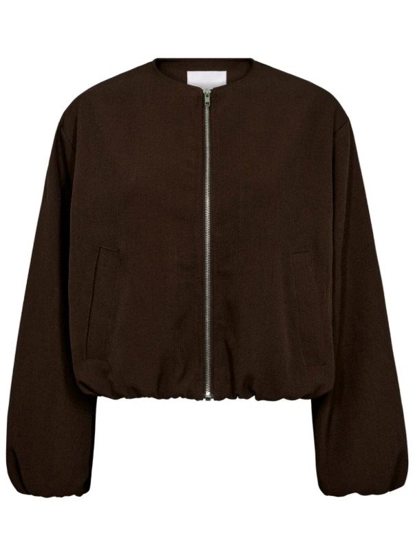 En modern och stilren jacka från Co'Couture med en lätt ballonformad siluett som ger ett trendigt och avslappnat uttryck. Den runda halsringningen och den raka dragkedjan framtill skapar en minimalistisk look. Den mjuka, stretchiga kvaliteten ger god komfort samtidigt som passformen håller sig snygg genom hela dagen.