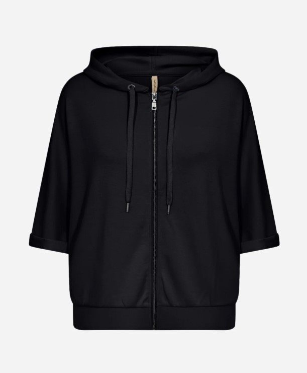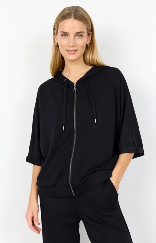 En mjuk och avslappnad huvtröja med korta ärmar från SoyaConcept. Den raka passformen och den dubbla dragkedjan gör den enkel att styla både öppen och stängd. Perfekt för lediga dagar eller som ett bekvämt lager i vardagen.