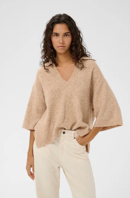 GUNIIW Pullover från InWear är en mjuk och elegant stickad tröja med en avslappnad, modern silhuett. Modellen har en feminin V-ringning med krage, trekvartsärm och en lätt boxig passform som faller fint mot kroppen. Den något kortare längden ger ett modernt uttryck och gör tröjan enkel att bära både instoppad och lös.