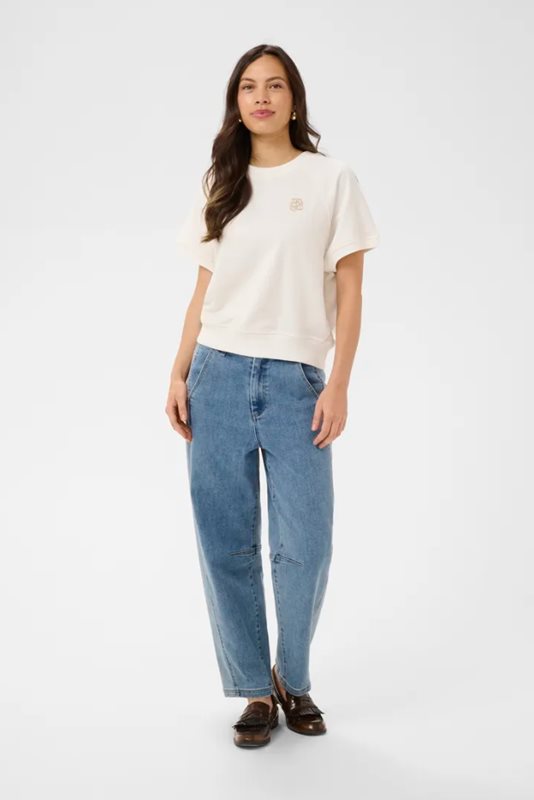 En modern sweatshirt med kort ärm som kombinerar komfort och stil i en avslappnad silhuett. Den mjuka kvaliteten och den något boxiga passformen ger ett ledigt uttryck, perfekt för vardag och fritid. Den diskreta broderade logotypen på bröstet adderar en stilren detalj, medan ribbade avslut ger en klassisk finish.