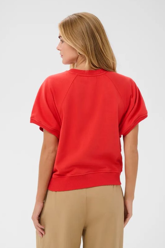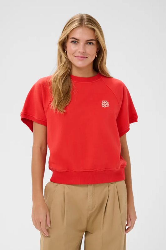 En modern sweatshirt med kort ärm som kombinerar komfort och stil i en avslappnad silhuett. Den mjuka kvaliteten och den något boxiga passformen ger ett ledigt uttryck, perfekt för vardag och fritid. Den diskreta broderade logotypen på bröstet adderar en stilren detalj, medan ribbade avslut ger en klassisk finish.